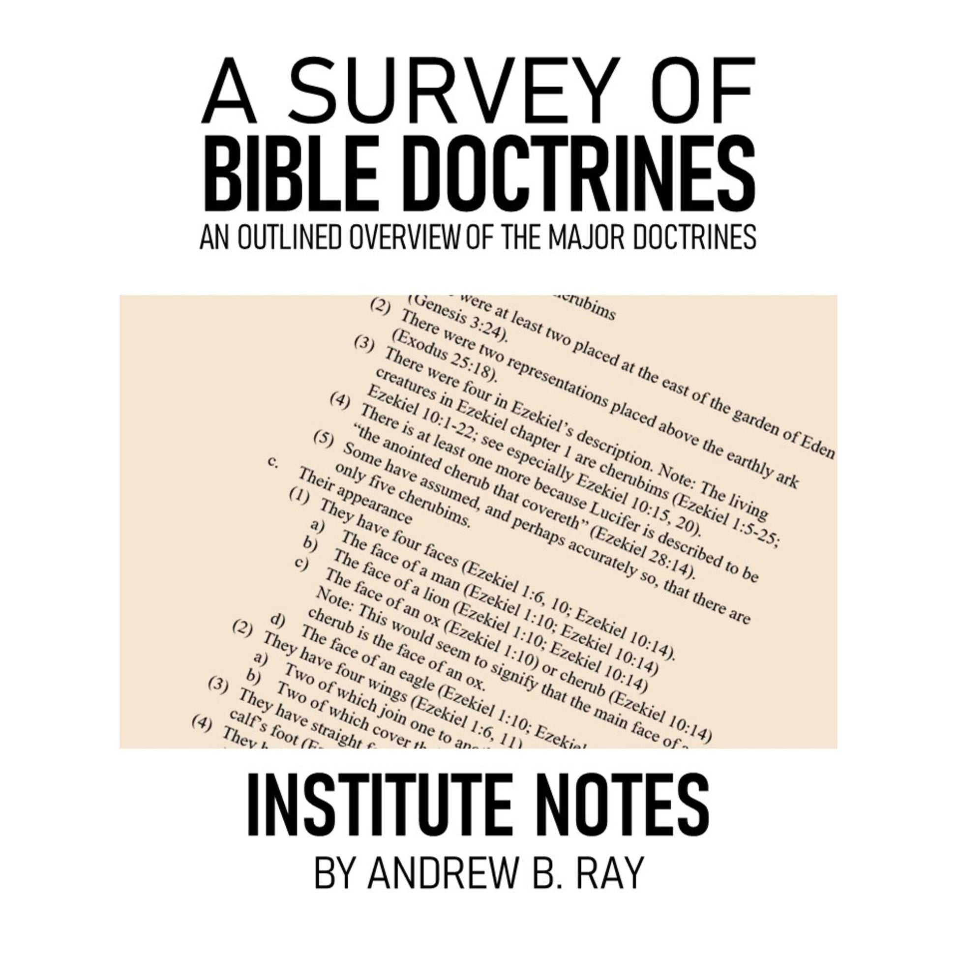TThis downloadable PDF file consists of 243 pages of notes covering all the major Bible doctrines including the Godhead, the spirit world, physical creation, man, sin, human affairs, the word of God, typology, dispensationalism, prophecy, salvation, Israel, the New Testament church, and godly living.